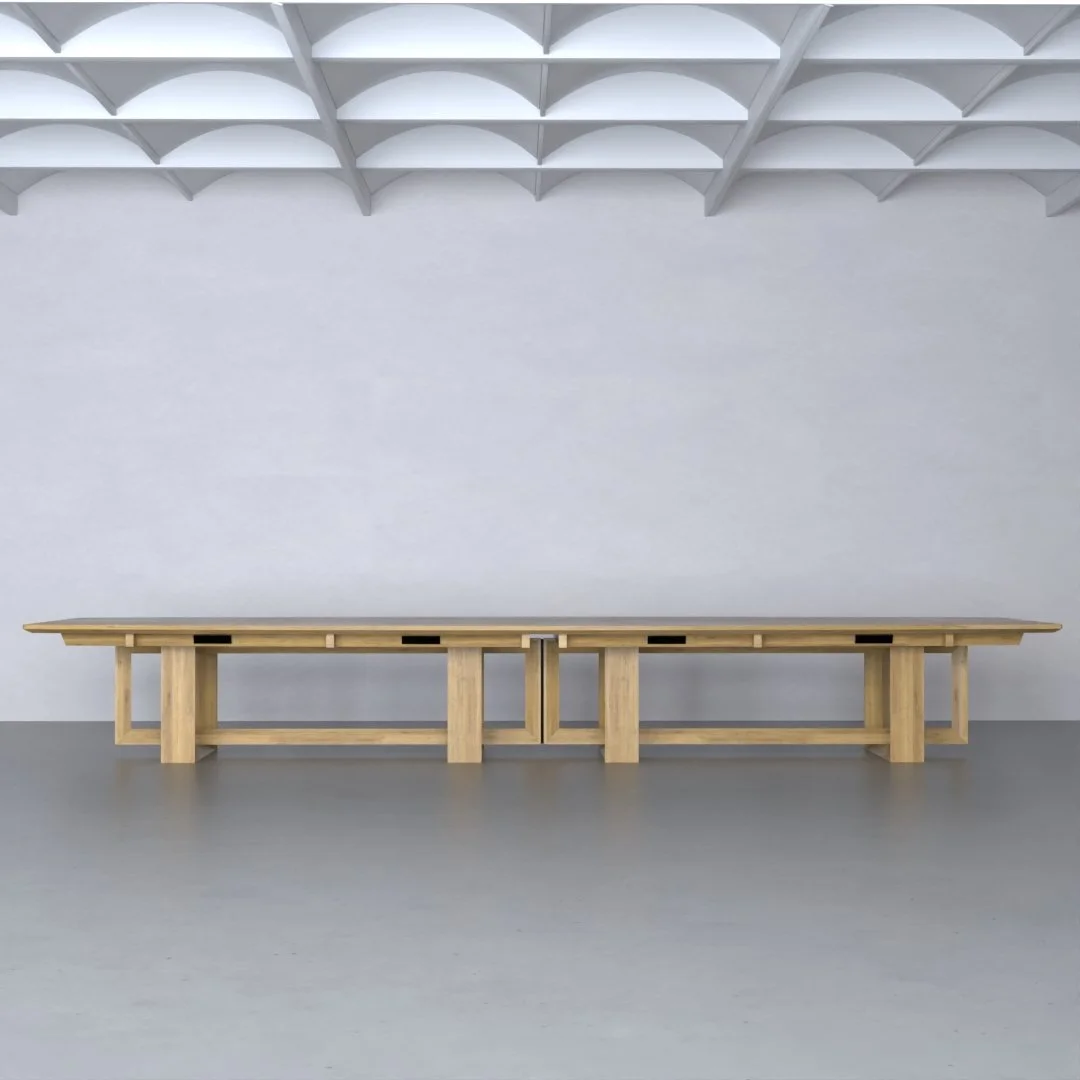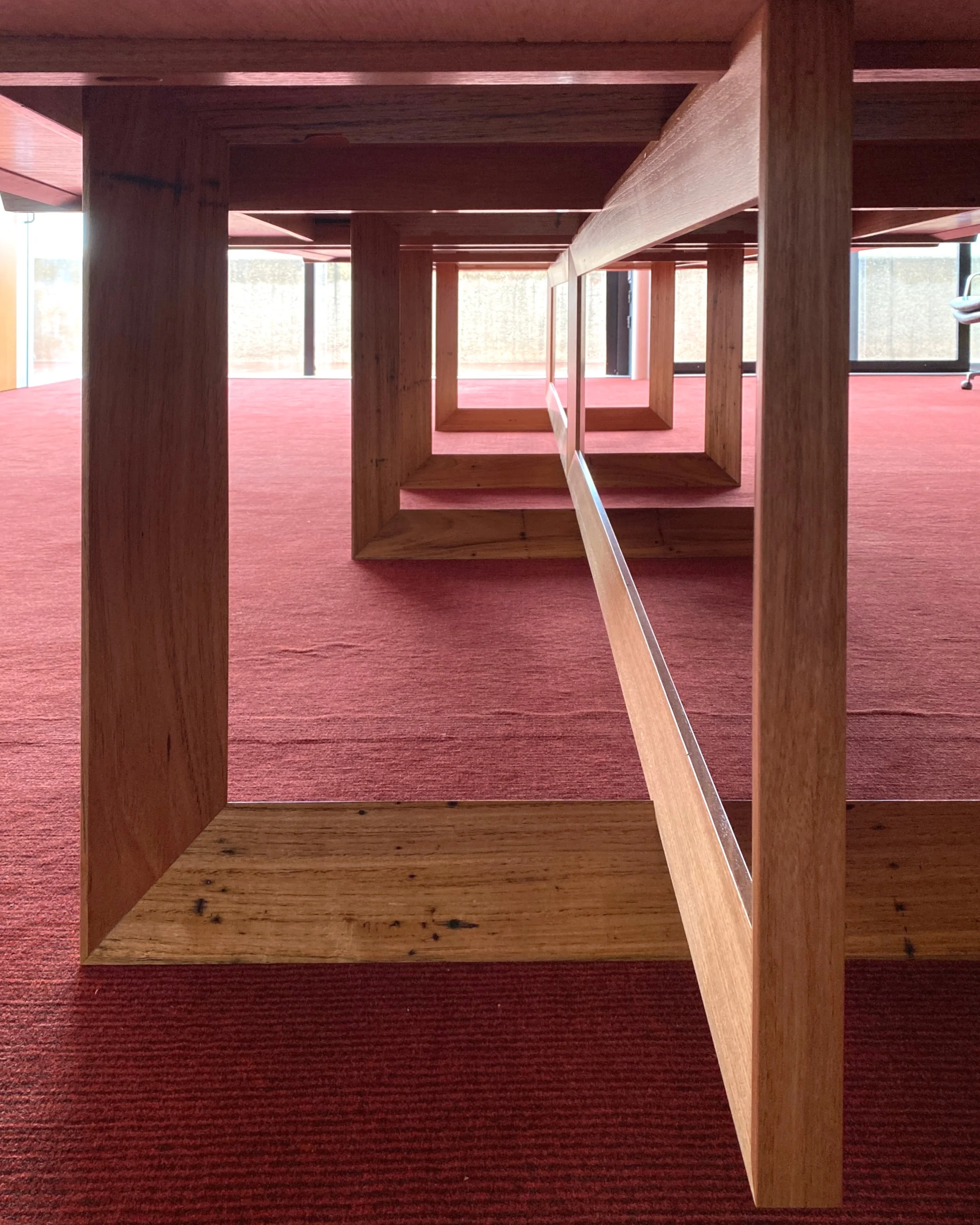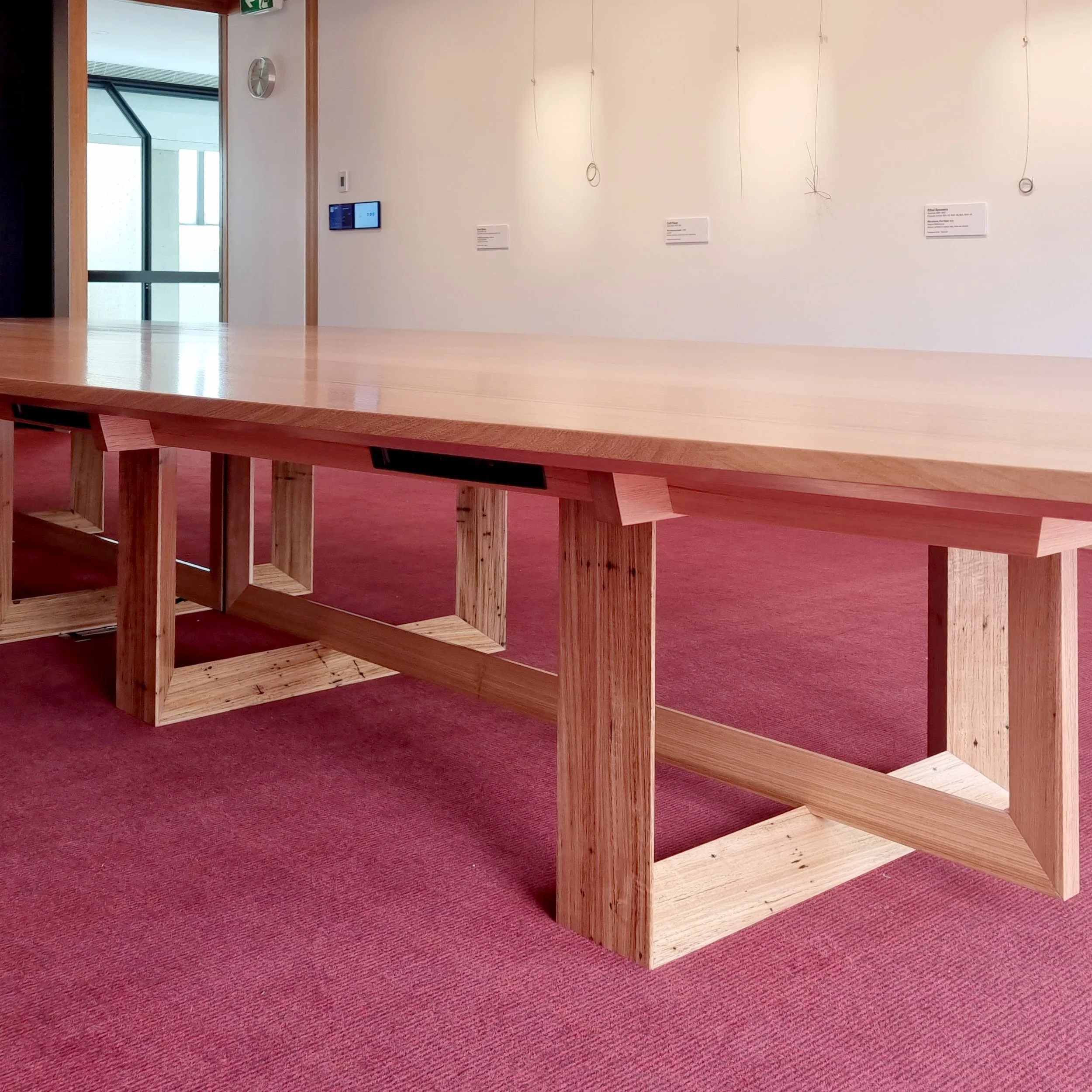 Bespoke boardroom table for the National Gallery of Australia with integrated wiring and made with recycled mountain ash.